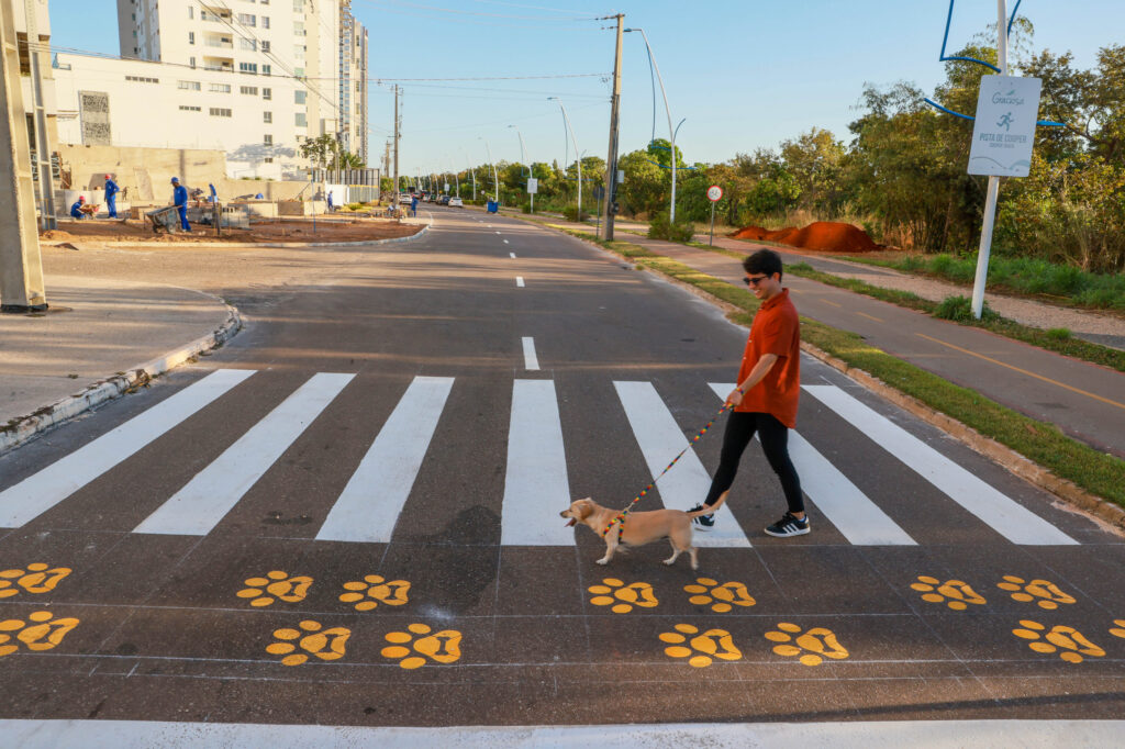 Com pequenas marcas de patinhas amarelas pintadas ao lado da faixa de pedestres, Palmas passa a contar com uma nova forma de garantir a segurança de tutores e seus animais durante os passeios em áreas públicas de grande circulação. É o projeto PataDestre, uma iniciativa conjunta da Secretaria Municipal de Proteção e Bem-Estar Animal (Sebem) e da Secretaria Municipal de Mobilidade Urbana (Semob).